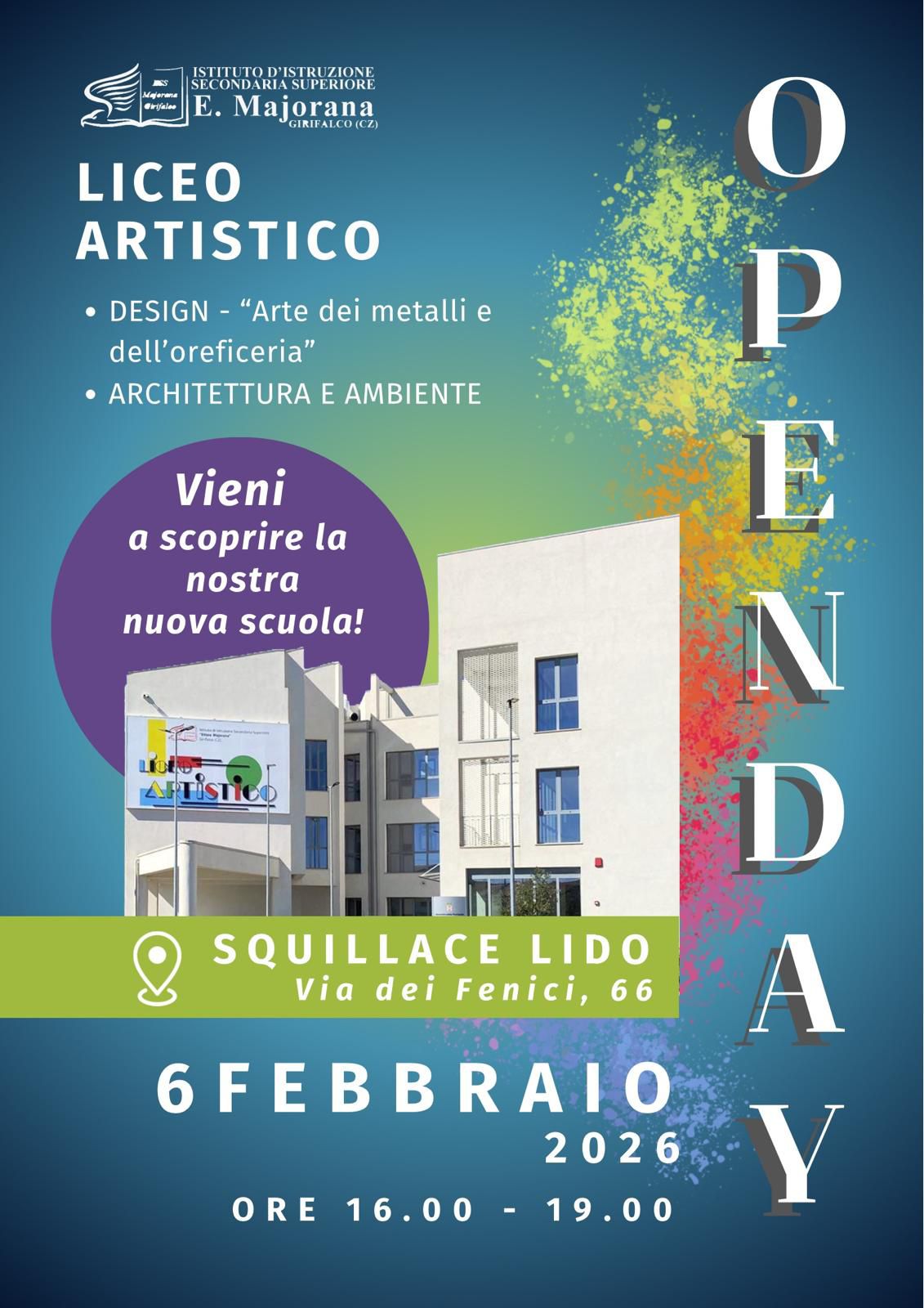 Open Day - Liceo Artistico Squillace 6 Febbraio 2026 dalle ore 16,00 alle ore 19,00